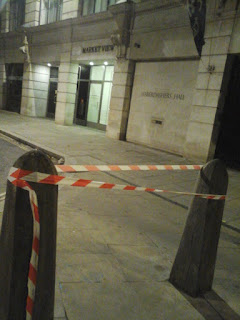 The period of the Rufus Stone Residency was largely consumed with research. I became interested in the effect such borders would create in an urban space, but for them to be convincing or meaningful, they had to resemble–ideally be identical to–the signifiers they mimicked as closely as possible. I spent a fair bit of the residency cataloguing the aesthetics of caution tape in London, and as the results show, the main colour scheme favoured in the UK is the Daniel Buren-esque serialisation of red and white. I felt that an interesting discourse this realization evoked is the way in which the borders had expectations of their audience. To use, for example, the second most common colour scheme of yellow and black, would have almost always have produced the same effect, but from my own experience that colour scheme would mean something different and the borders would have been more “visible” than they needed to be. I wanted the borders to have as little to distinguish them as art as was possible and so I was pleased to find a roll of red and white tape that exactly mirrored the usual colour scheme in a hardware shop.